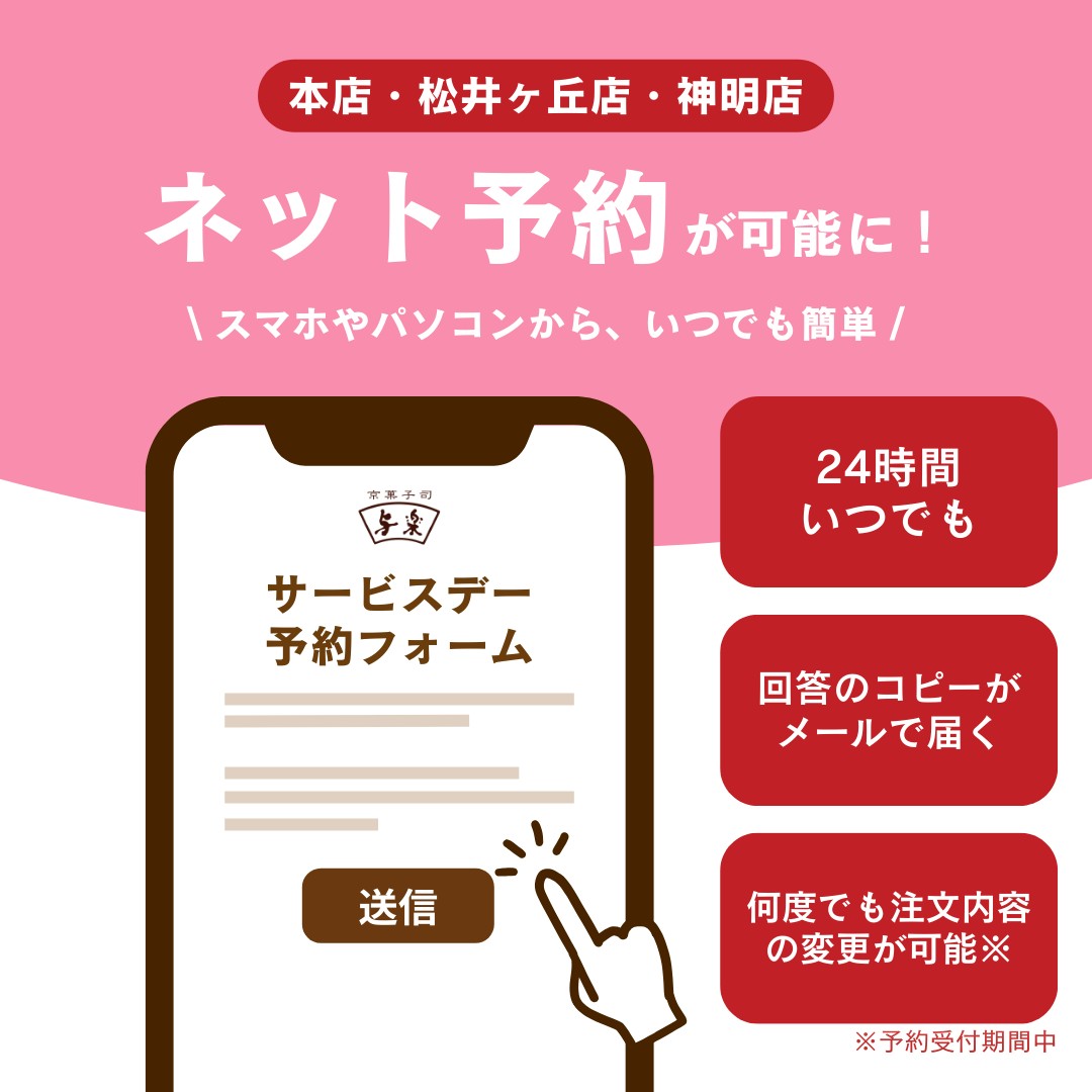 本店・松井ヶ丘店・神明店では、オンライン予約フォームから、24時間いつでもご予約が可能になりました。(※ネット受付は2/9(月)まで)