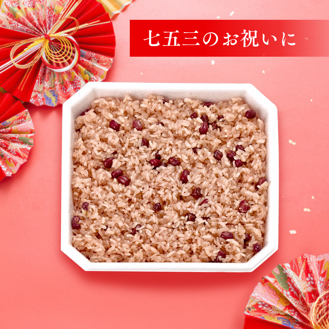 七五三のお祝いに、ふっくらと蒸し上げたお赤飯をご用意いたしました。
